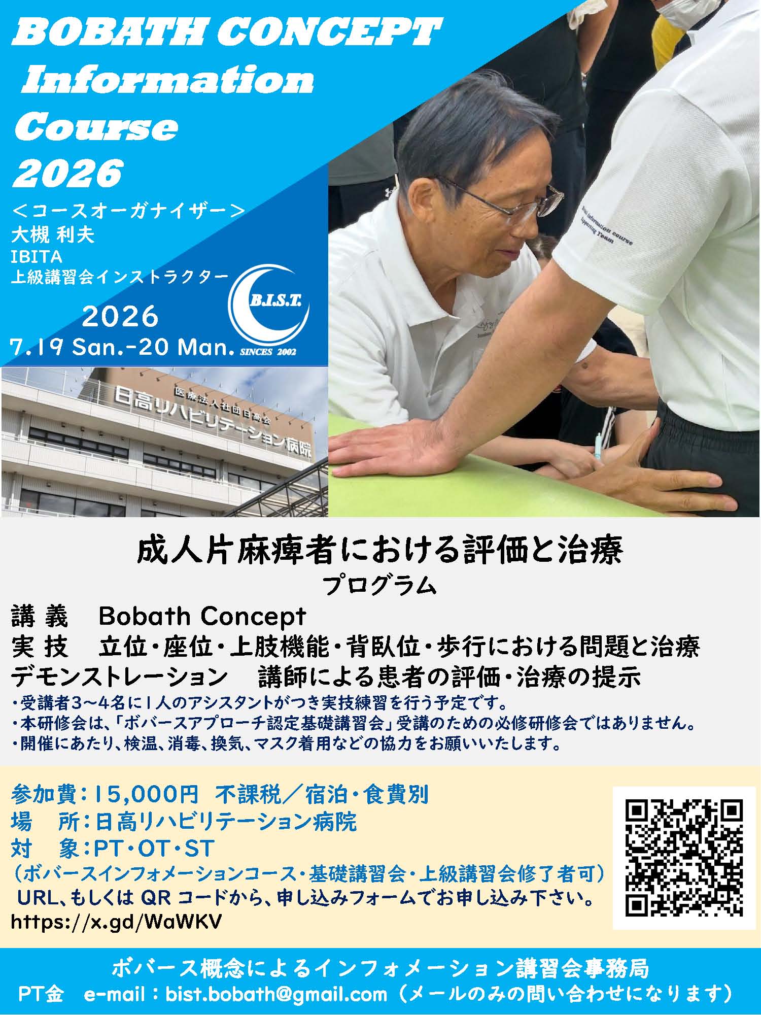 BIST:Bobath Information course Supporting Team(ビスト)は、国際ボバース上級講習会インストラクターである大槻利夫氏の指導の下、「ボバース概念によるインフォメーション講習会」をサポートするセラピストチームです。